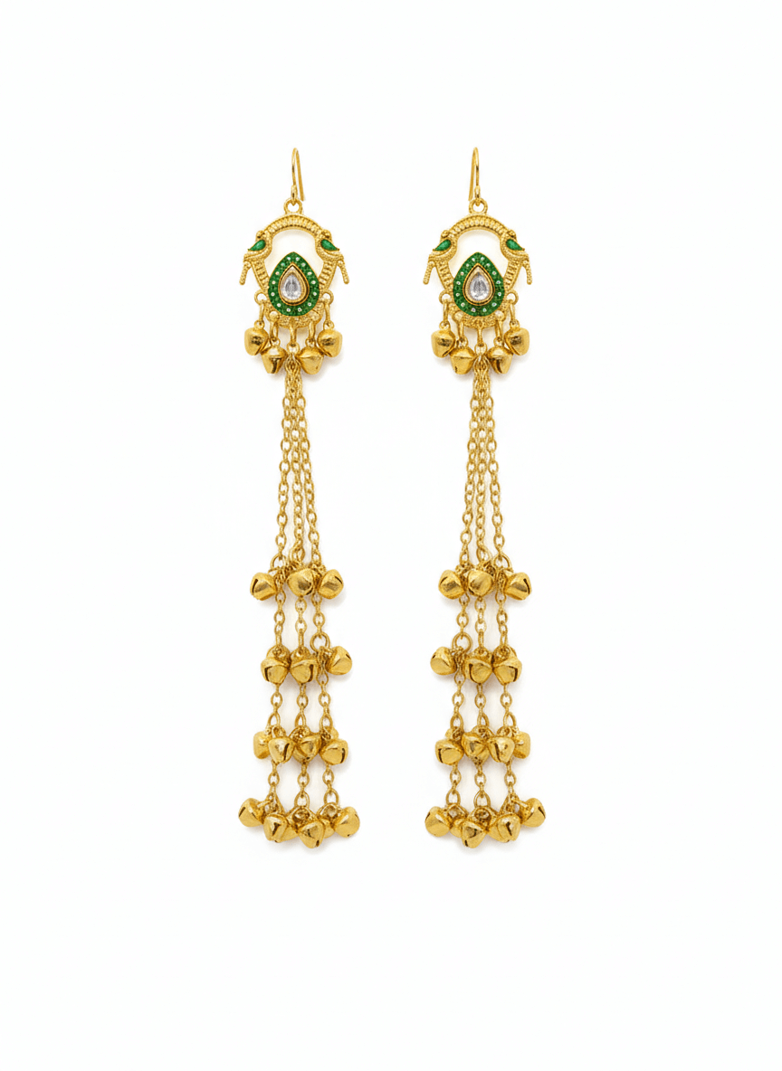 • Tassels: Features triple-layered gold-tone chains adorned with delicate mini-bells (ghungroos) for a melodic movement.